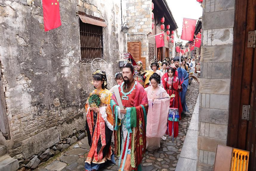 为贯彻落实习近平总书记考察安徽重要讲话精神,进一步传承地域传统文化,推动文化和旅游融合发展,2024年11月10日,桃花潭景区举办了场面空前的“蟠桃盛会”。盛会当日,来自长三角地区的数百名热爱汉服文化的同袍齐聚桃花潭景区,衣袂翩跹的姑娘家、丰神俊朗的少儿郎身着传统服饰穿梭在粉墙黛瓦之中,行走在桃花潭南阳老街之上,恍如经历了一场历史穿越之旅。